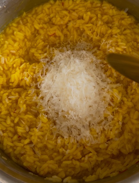 Mescolate bene e finite di cuocere il riso, eventualmente regolando. Una volta terminata la cottura, spegnete il fuoco e mantecate con il burro e il grana padano grattugiato con l’accortezza che siano entrambi freddi di frigo.