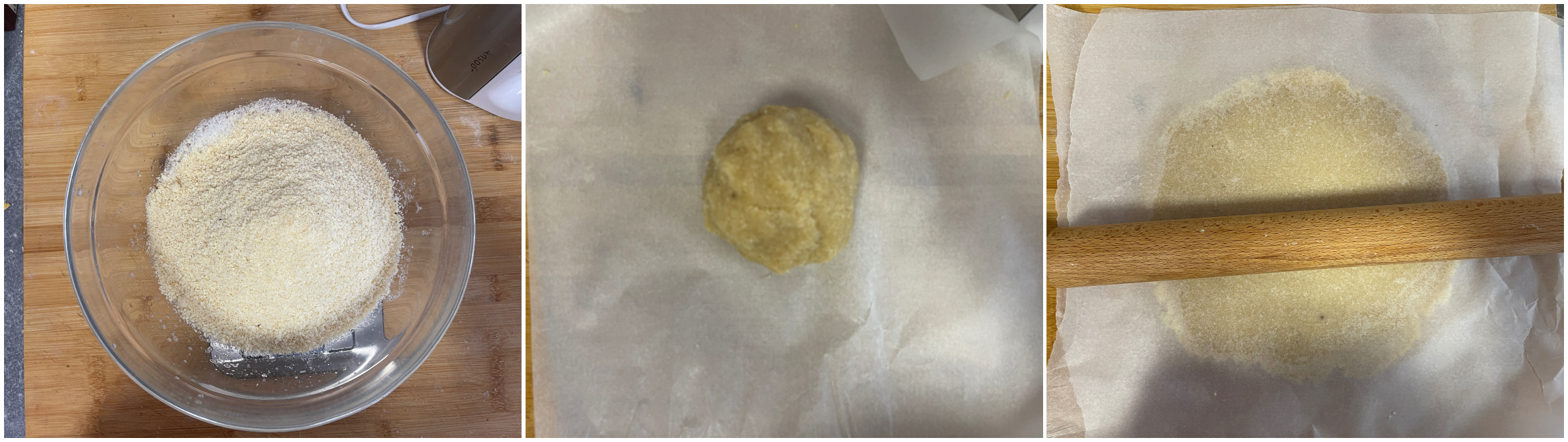 Se l’impasto dovesse risultare sbricioloso perché i vostri albumi sono troppo piccoli potete aggiungerne un terzo oppure un pochino di acqua fredda.