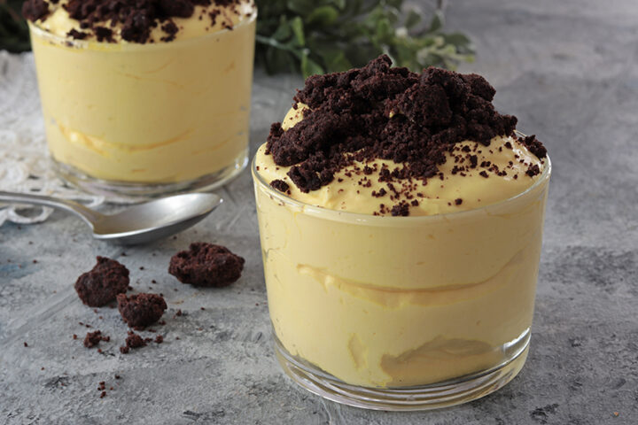 CREMA ALLO ZAFFERANO CON CRUMBLE AL CACAO