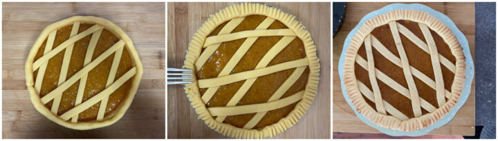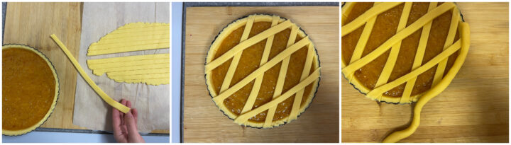Con la pasta frolla avanzata create tante strisce e intrecciatele sulla crostata.