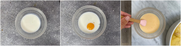 Nel frattempo prendete una ciotolina con il latte e unite il tuorlo.