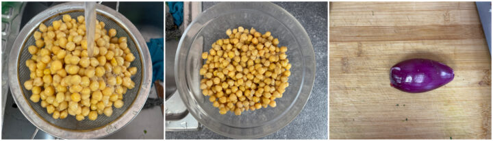 Scolate i ceci dall’acqua di conservazione e sciacquateli sotto acqua corrente.