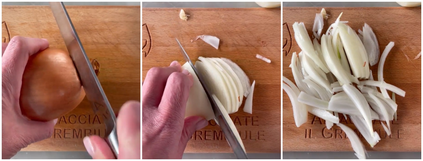 Pulite e tagliate tutte le cipolle a fettine sottili.