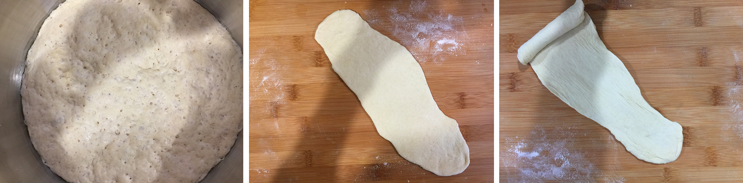 Stendete ogni porzione di impasto con il matterello in modo da avere una striscia lunga e arrotolatela partendo dal lato corto fino in fondo poi chiudete il rotolo come se fosse una pallina e schiacciate il centro all’interno facendo pressione con il pollice.