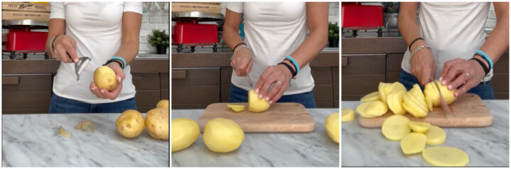 Sbucciate le patate e tagliatele a fette di circa mezzo centimetro.