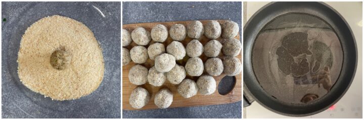 Passate tutte le polpette di lenticchie nel pangrattato premendo bene in modo da far aderire la panatura.