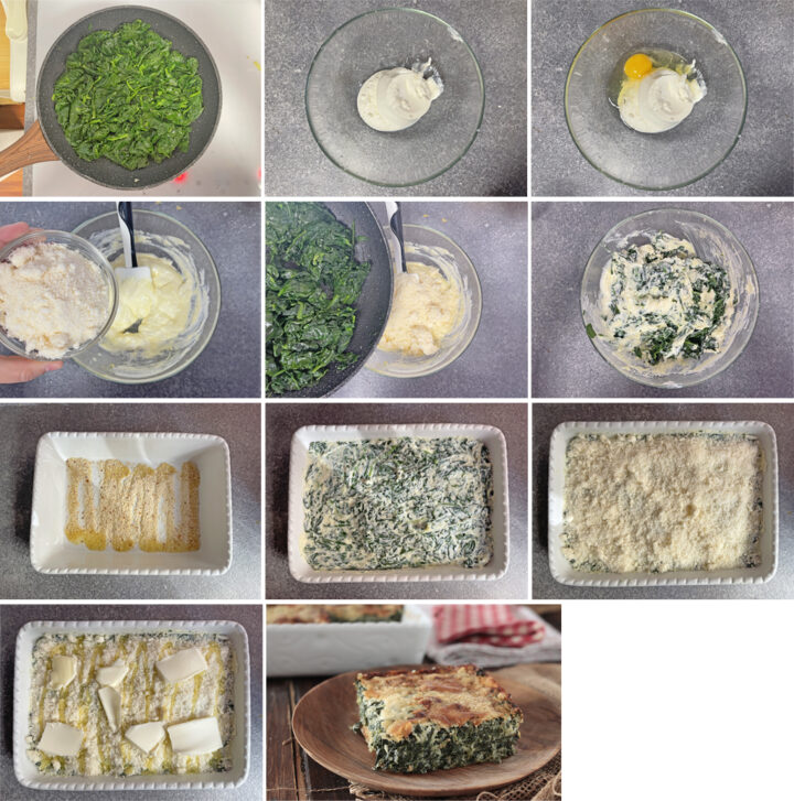 Cuocete lo sformato di spinaci in forno preriscaldato ventilato a 180/200° per 30/35 minuti circa fino a che si sarà formata una crosticina dorata in superficie.