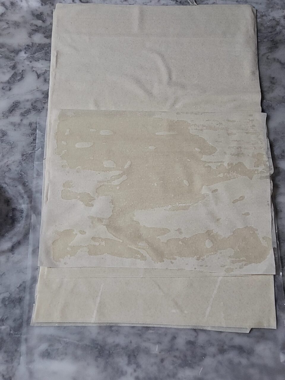 Aprite la confezione di pasta fillo e spennellate sempre co olio evo metà del primo foglio