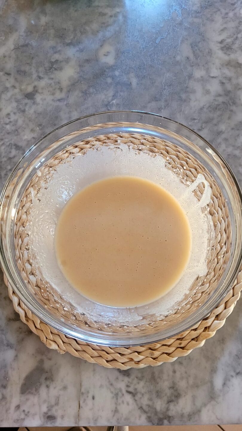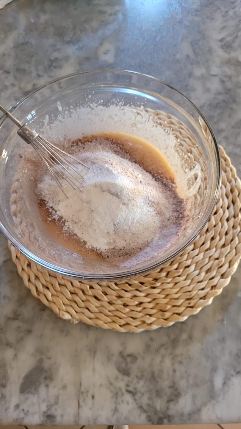 Unite gli ingredienti secchi nella ciotola con i liquidi e amalgamate il tutto con le fruste oppure con una spatola.