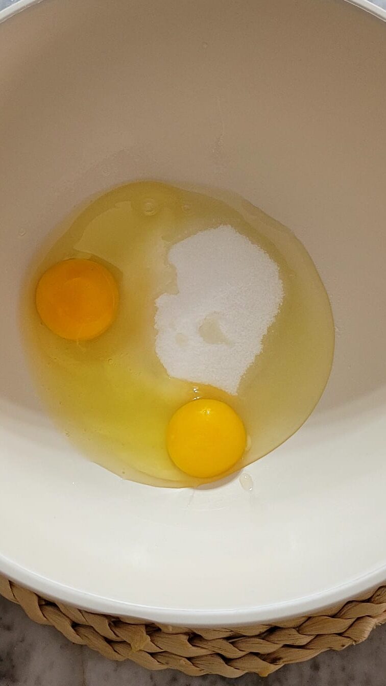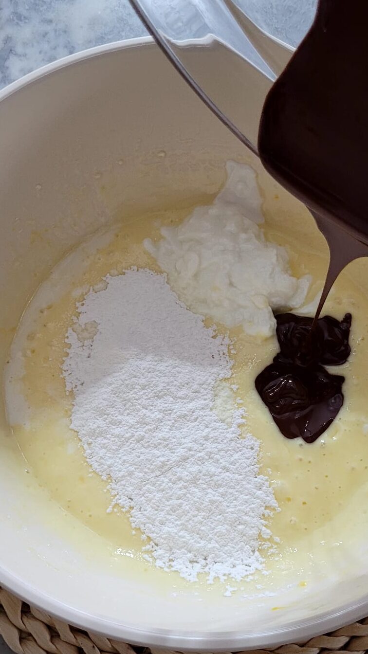 Mentre il cioccolato si raffredda, montate le uova con lo zucchero, fino ad ottenere un composto chiaro e spumoso