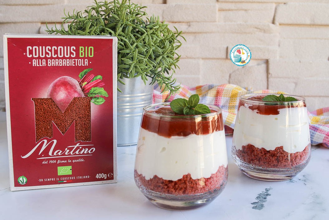 La cheesecake al bicchiere con couscous un dolce al cucchiaio senza cottura pronto in poco tempo, con una base di cous cous alla barbabietola, uno strato di crema di formaggio senza gelatina e confettura come topping. Se non vuoi perdere…