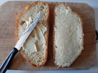 Tagliate il pane a fette spesse circa 1.5-2 cm, e spalmate su ogni fetta un velo di maionese