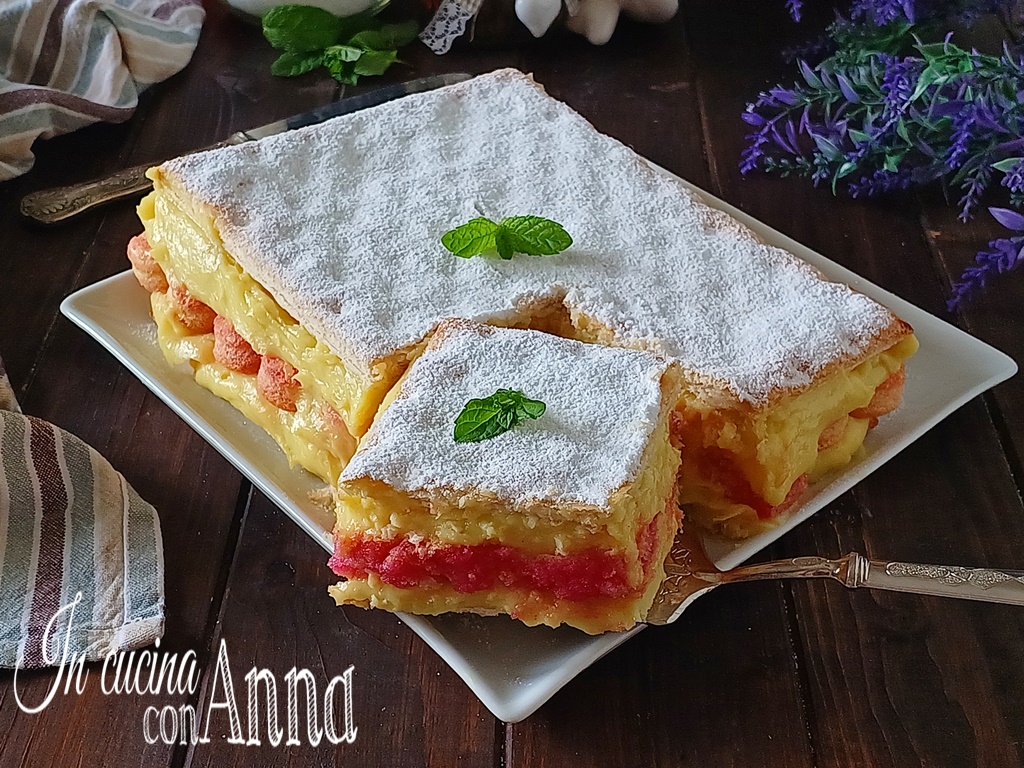 Così oggi ho preparato la versione veloce, in cui il pan di spagna è sostituito dai savoiardi e la sfoglia da quella pronta, anche se cuocere quella del banco frigo a casa è velocissimo, quindi potete tranquillamente utilizzare anche quella.