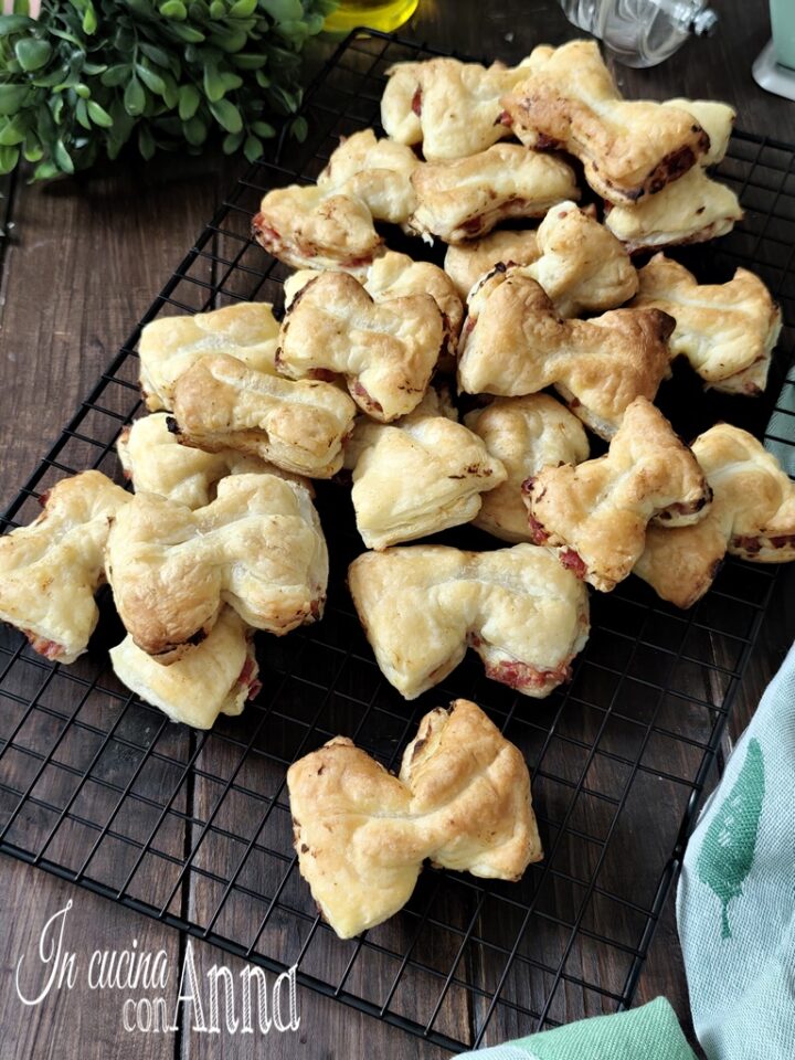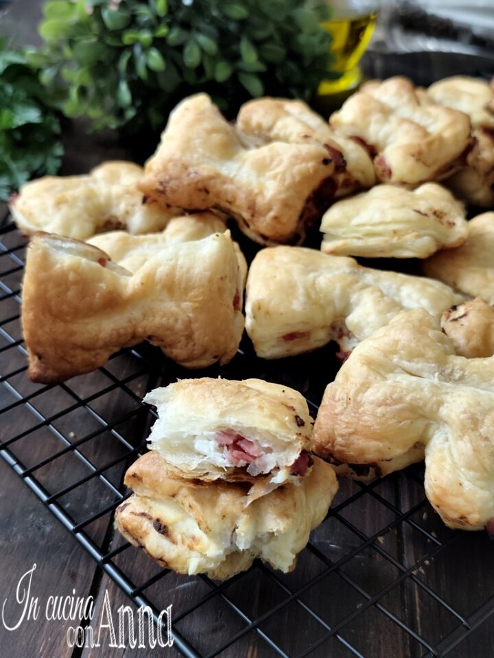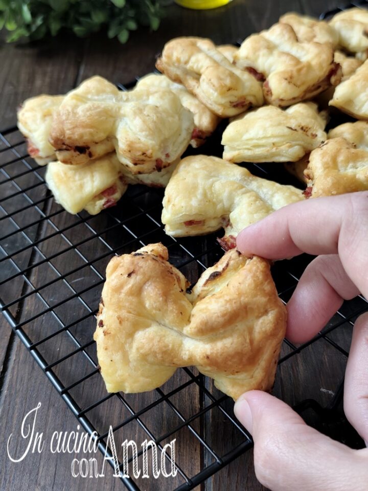 I Fiocchi rustici di pasta sfoglia sono degli antipastini molto belli da vedere, semplici da preparare, sfiziosi e saporiti da mangiare. Perfetti per gli aperitivi, come antipasto, in buffet di feste, preparatene tanti vi assicuro che andranno a ruba.
