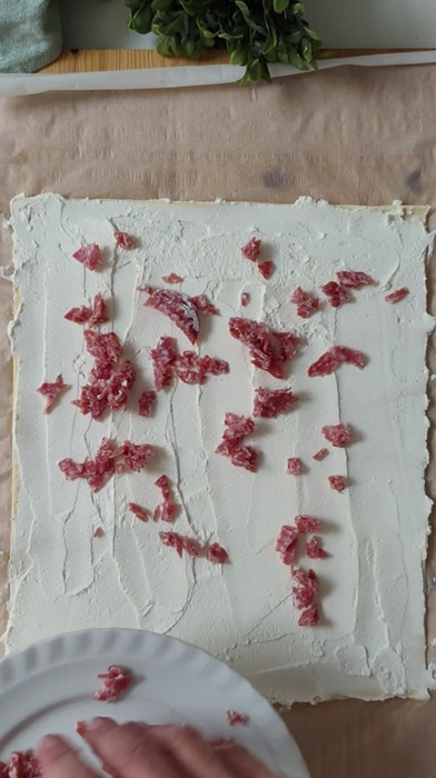 Ricopritelo con la ricotta (o il formaggio spalmabile).