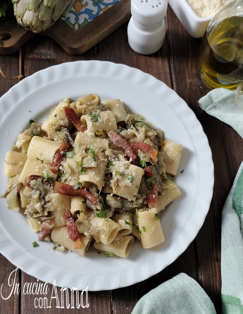 La pasta carciofi e guanciale è un primo ricco di sapore, ma molto semplice da preparare, un piatto rustico e gustoso perfetto per tutta la famiglia, ma anche per un pranzo informale tra amici, provatelo, vi conquisterà al primo assaggio.