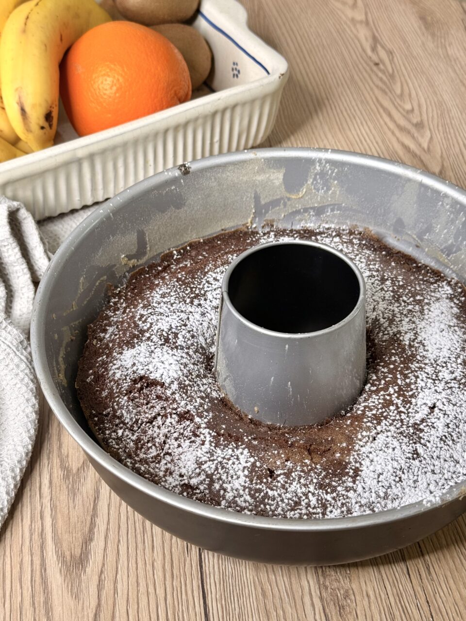 -Gocce di cioccolato fondente 1 cucchiaio colmo per tutta la ciambella prima di infornare