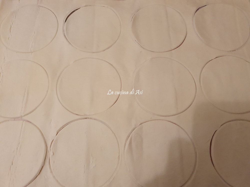 Utilizzare un piccolo coppapasta per ricavare tanti cerchietti come quelli visibili in foto.