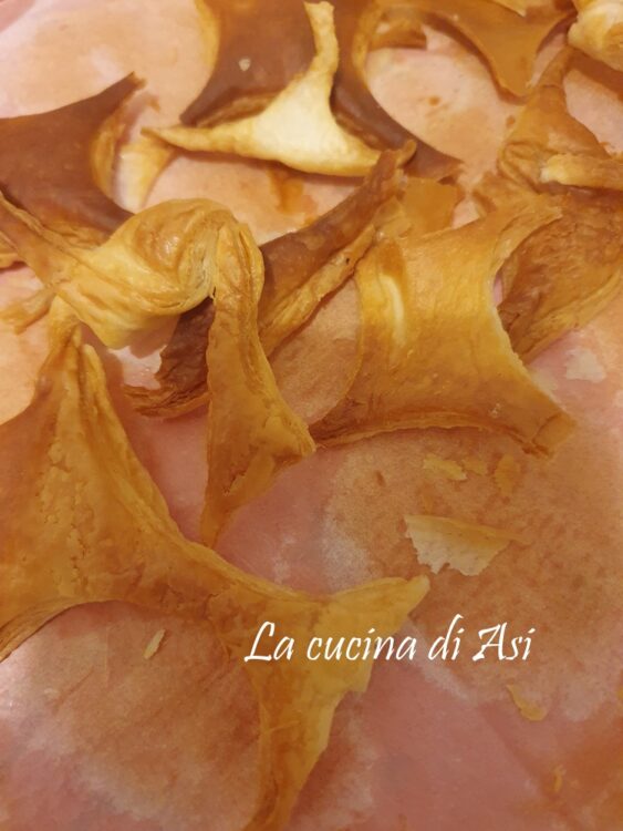Cuocere nello stesso tempo anche i ritagli di pasta sfoglia, necessari per rivestire successivamente il perimetro delle millefoglie monoporzione.