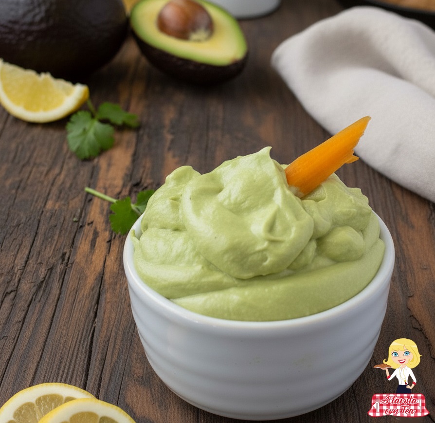 La MAIONESE di AVOCADO è una salsa ricca, leggermente acidula, dalla consistenza setosa ed avvolgente che non ha niente da invidiare alla classica maionese.