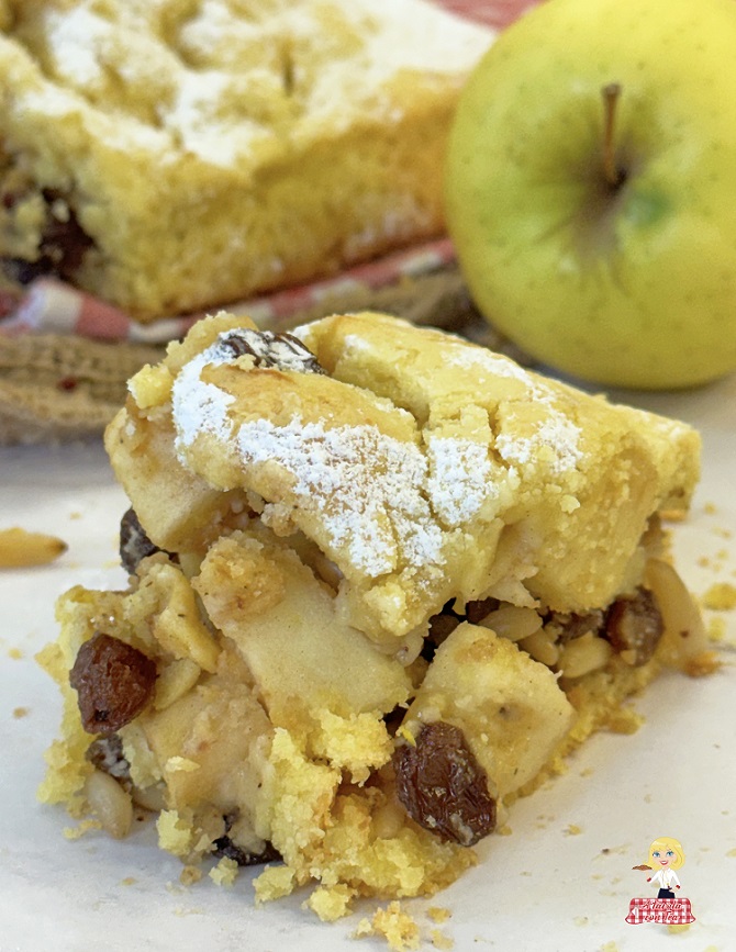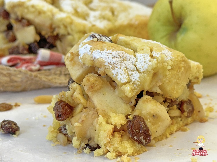 Se non avete tempo o voglia per realizzare l’impasto, potete sostituire la pasta frolla con la pasta sfoglia pronta che trovate al supermercato anche se ovviamente il risultato non sarà lo stesso. Per quanto riguarda il ripieno non vi preoccupate perché lo assemblerete in pochissimi minuti: il tempo di tagliare le mele a pezzetti mescolarle con la cannella lo zucchero, aggiungere uvetta e pinoli ed il gioco è fatto