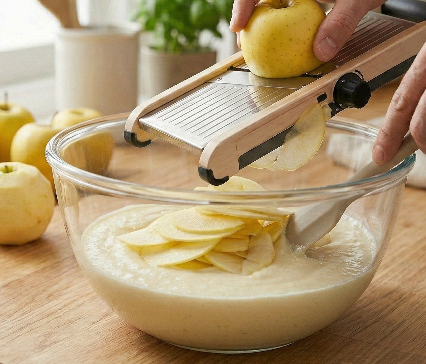 Il segreto del successo è la mandolina: più le fettine di mela sono sottili, più la torta risulterà “invisibile” e cremosa al palato. Non abbiate fretta di sformarla: deve essere completamente fredda per non rompersi.