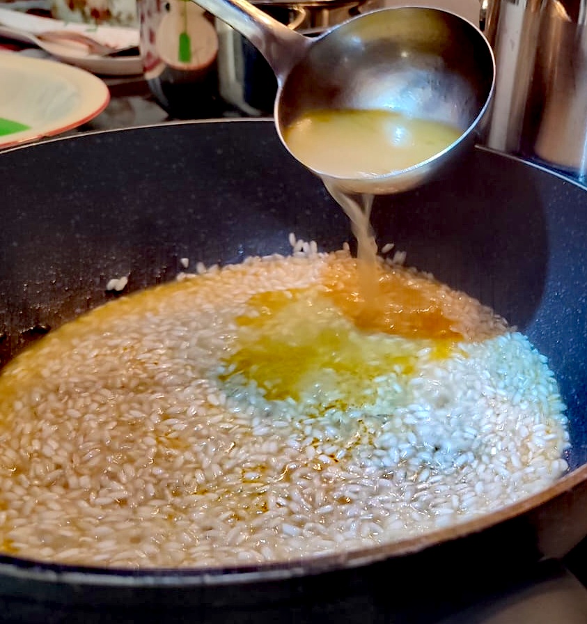 Per questa ricetta ho utilizzato un brodo di pesce avanzato il giorno prima, dove avevo cotto una gallinella.