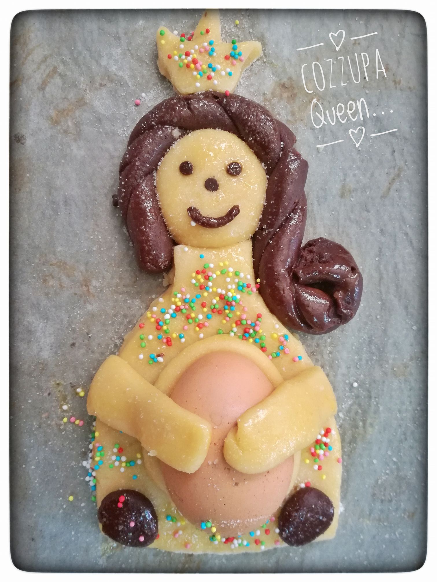 Da noi inoltre c’è la tradizione di fare per le bimbe, una bambolina e per i maschietti si forma un uccellino. Io di solito le faccio tutte a forma di ciambella. Per una persona speciale potete farla anche a forma di cuore e incastonare al centro l’uovo. Infornateli e per i tempi di cottura ci vorranno circa 15 minuti a infornata, però regolatevi con il vostro forno e controllare di tanto in tanto.