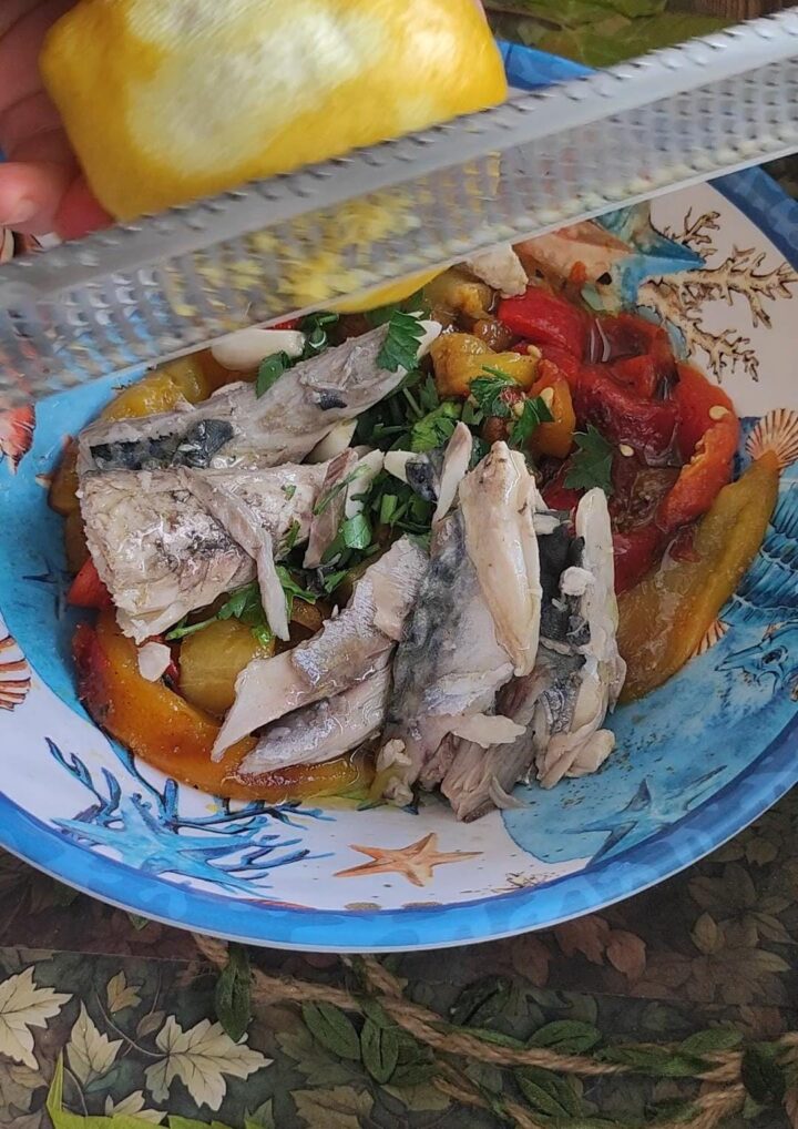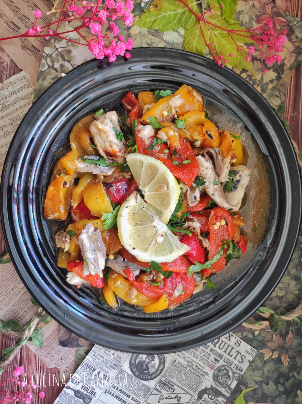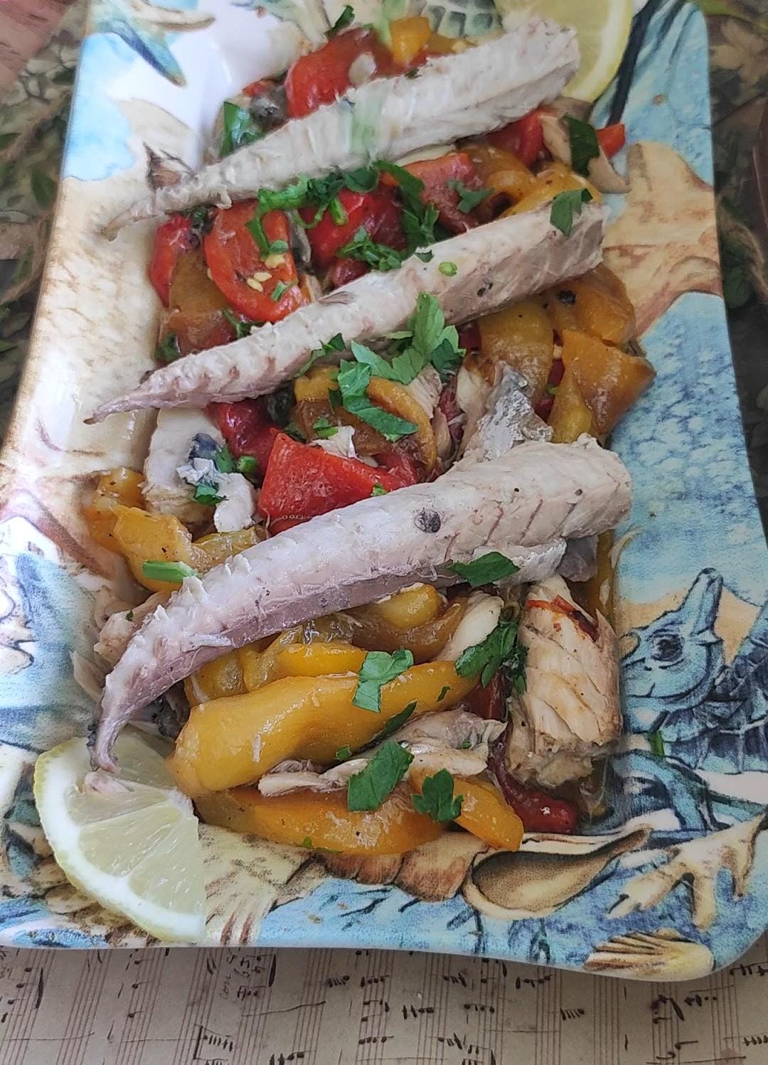 Procedimento per i peperoni arrostiti con lo sgombro e limone:
