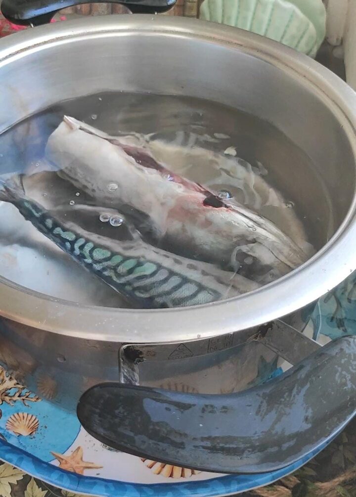 Questo modo di servirli è il più lungo rispetto agli altri due ma non troppo. Si tratta di servire i peroni con lo sgombro bollito e sfilettato. Anche questo piatto l’ho sempre visto fare a casa mia e lo adoro.