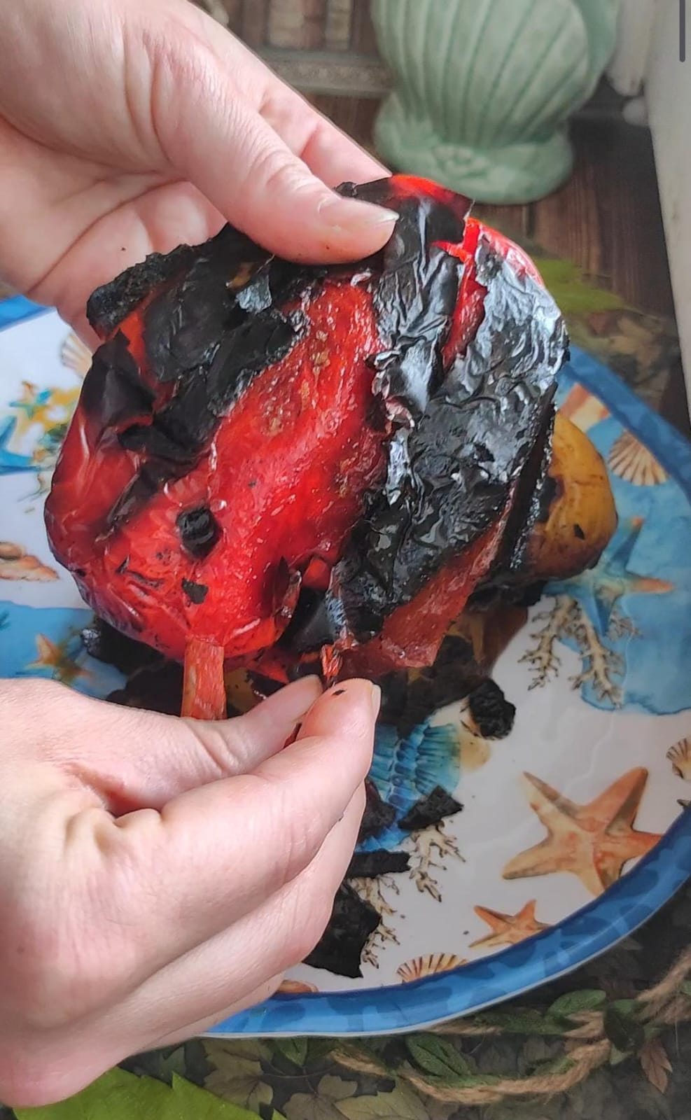 Quando saranno cotti su tutti i lati e ammorbiditi, potete toglierli dal fuoco, farli raffreddare e sbucciarli. Cercate di eliminare anche i semini. Cosa che io non sono riuscita a fare del tutto. Anche se su alcuni lati sono leggermente croccanti, sono buoni comunque.