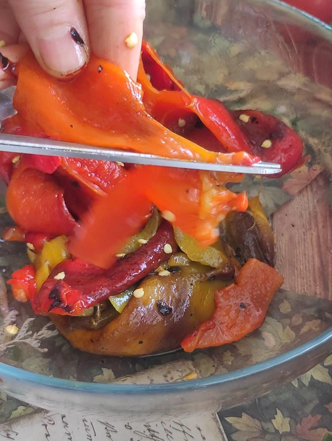 Per prima cosa lavate e asciugate i peperoni. Se deciderete di cuocerli in forno, metteteli su una teglia con carta forno a 200 gradi per circa mezz’ora. Fate dei buchini sulla superficie con una forchette. Quindi fate raffreddare e sbucciate.