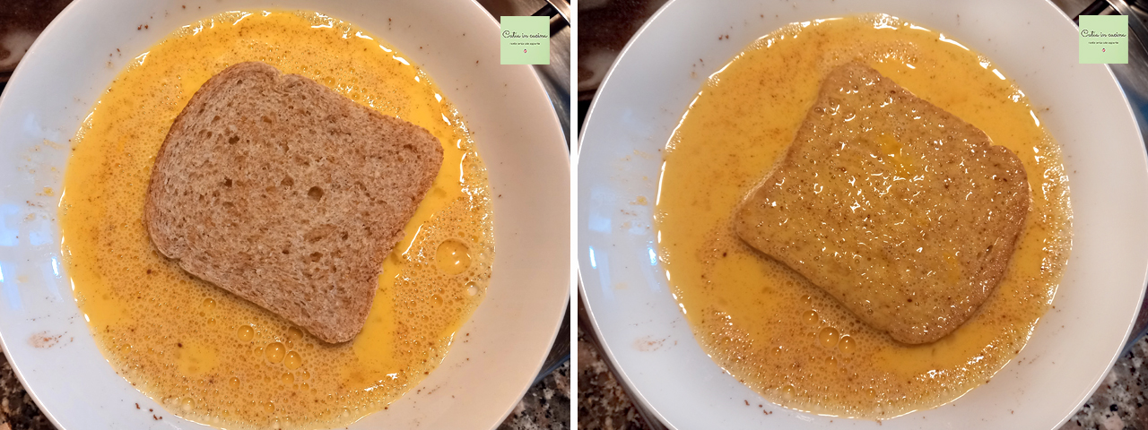 👉 Ho zuccherato poco la pastella, giusto con un cucchiaio di zucchero di canna. Se pensate di guarnire il French Toast con frutta fresca o yogurt naturale, anziché con lo sciroppo d’acero, potete valutare di zuccherare la pastella un po’ di più.