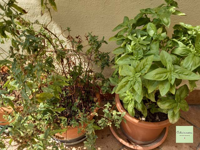 Nel frattempo preparare le erbe aromatiche: io ho usato menta e basilico, che miracolosamente sono sopravvissute sul mio terrazzo 😄 ma potete usare le erbe aromatiche che preferite (eventualmente anche aggiungere uno spicchio d’aglio).