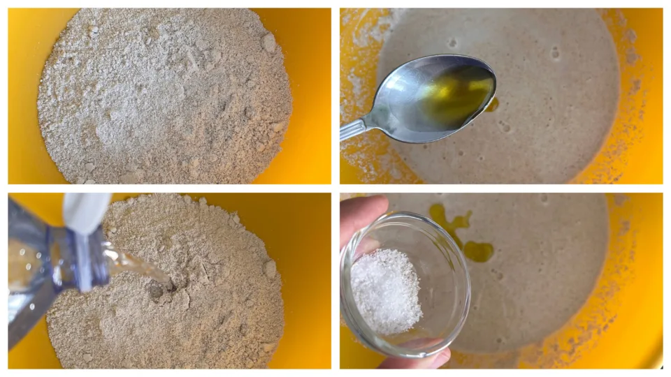 Per iniziare esegui questi semplici passaggi dunque, all’interno di una ciotola capiente, versa la farina di avena insieme all’acqua e mescola il tutto. Dopodiché aggiungi un cucchiaio d’olio extravergine d’oliva, l’acqua e il sale e rimescola il tutto.