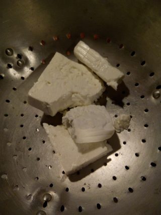 Accendere il forno a 200° modalità ventilato. Spezzare la feta e farla scolare nel colino dal suo liquido.
