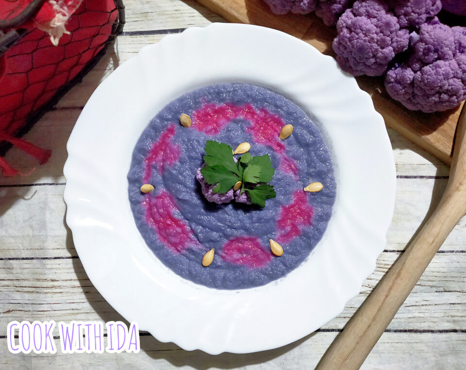 Questa volta mi sono divertita molto con questo cavolfiore viola, in realtà la ricetta di per sé è semplicissima, ma quello che non mi è piaciuto fare di più è stato il cambiamento cromatico durante la cottura.
