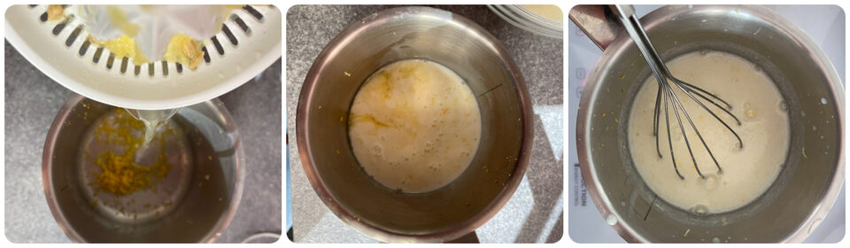 Versate la buccia grattugiata del limone assieme al suo succo in un pentolino.