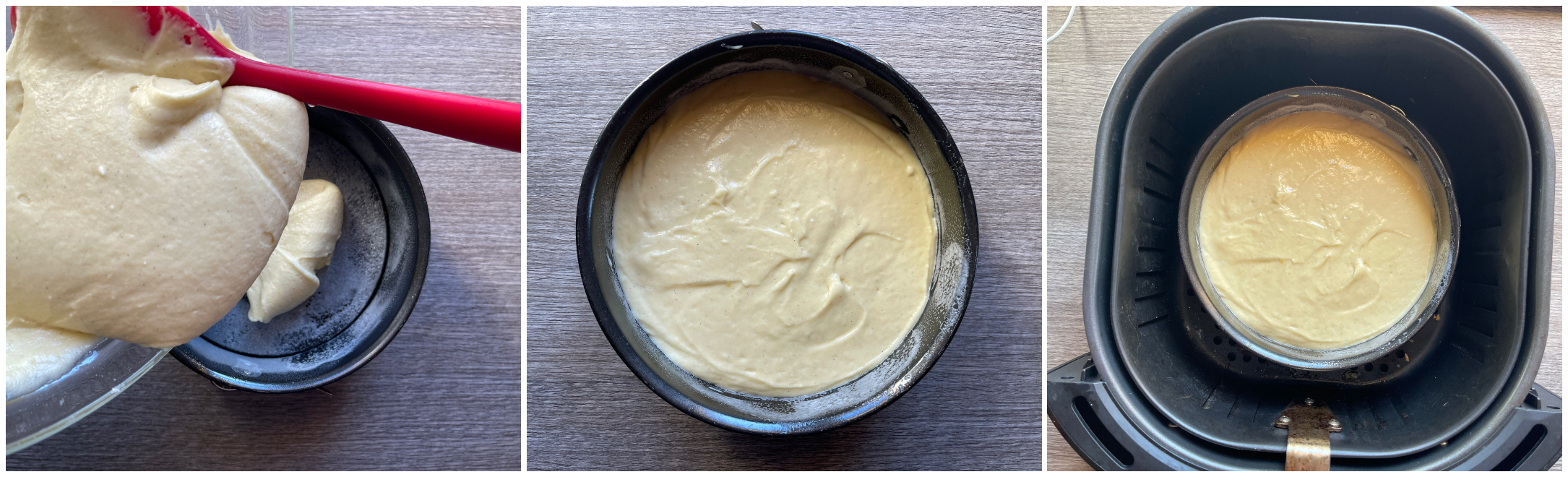 Imburrate ed infarinate una tortiera di 20 cm di diametro. Io ho scelto uno stampo a cerniera, ma volendo potete usare una normalissima tortiera che possa andare in friggitrice ad aria.