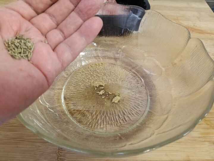 Uniamo anche il sale, lo zenzero e il rosmarino.