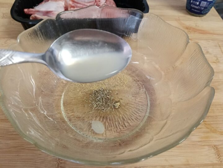 Aggiungiamo anche il cucchiaio di succo di limone. Aquesto punto mettiamo a marinare il coniglio per circa un’ora.