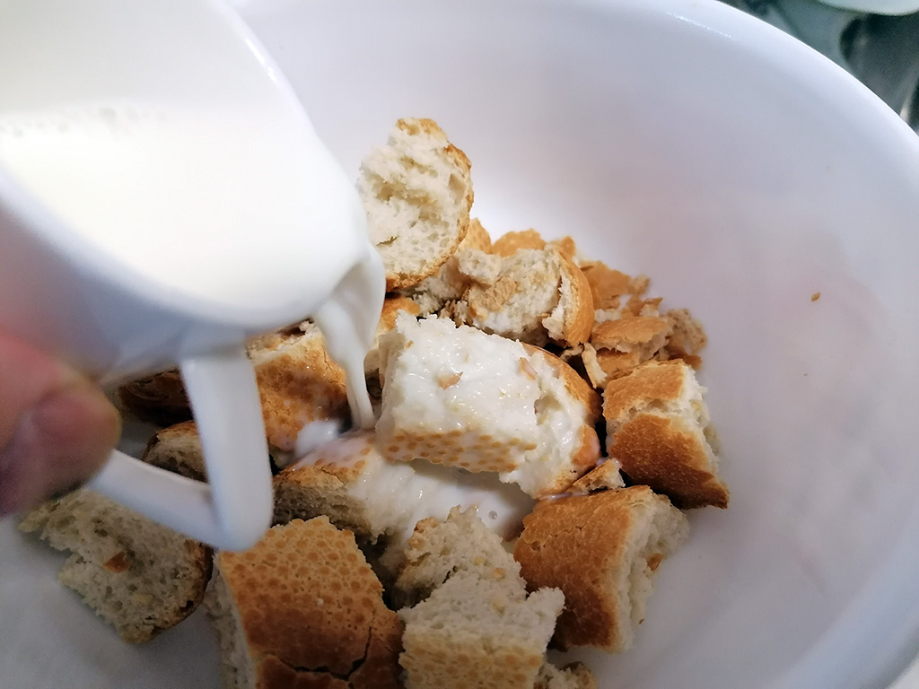 Per prima cosa mettiamo a lessare le patate e quando pronte le mettiamo in un contenitore e le schiacciamo. Puliamo il pesce se siamo capaci oppure facciamolo fare dal nostro pescivendolo di fiducia. Tritiamo l’aglio in piccoli pezzi. Tagliamo il pane in piccoli pezzi e quindi bagniamolo con il latte e quando ammollato strizziamolo per bene.