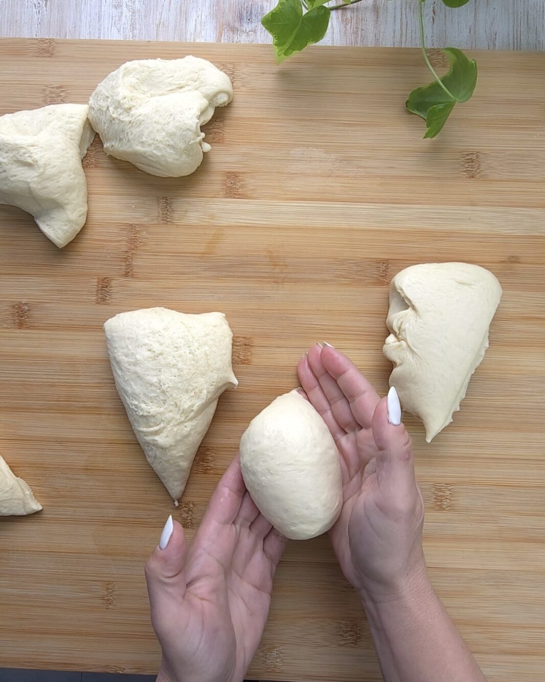 Trascorso il tempo di risposo, dividete l’impasto in 6 parti uguali.