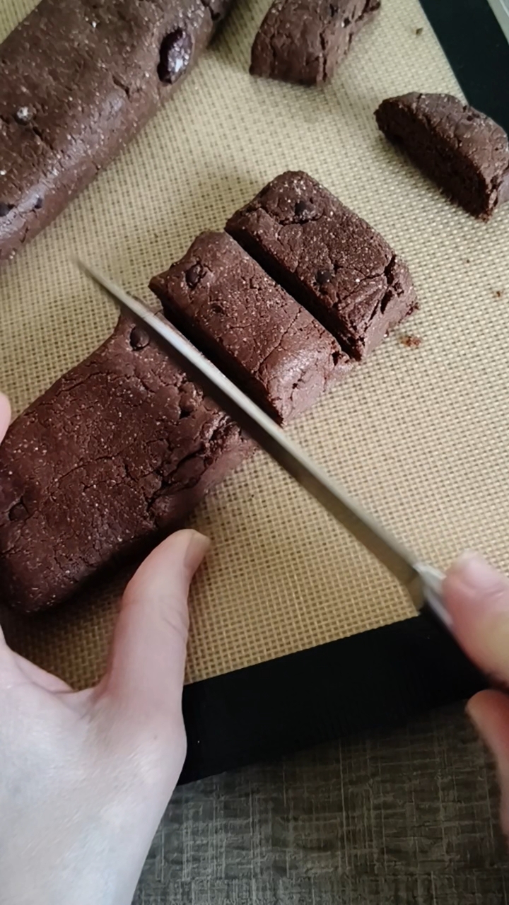 Trascorso il tempo, riprendere l’impasto e formare due filoncini di circa 16 cm da appiattire leggermente.