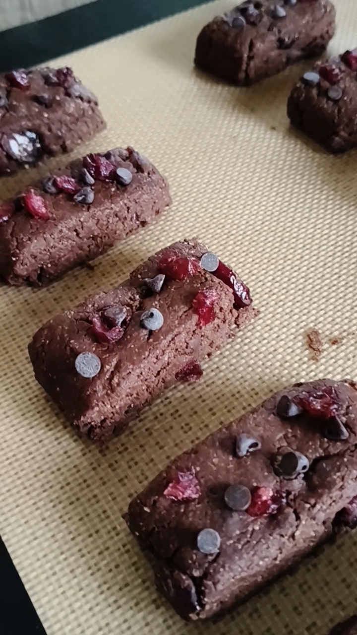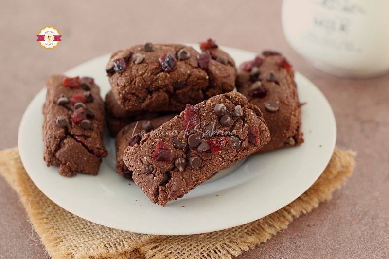 Decorare a piacere con qualche goccia di cioccolato e pezzi di mirtilli disidratati e cuocere in forno caldo a 170°C termo-ventilato per circa 15/16 minuti o statico a 180°C per circa 18 minuti. Devono rimanere morbidi, poi col raffreddamento raggiungeranno la consistenza ideale.