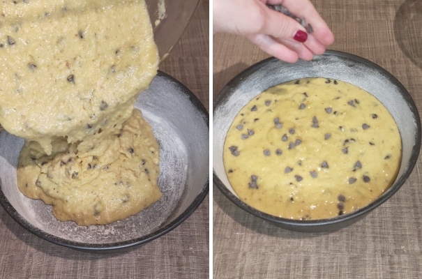 – Volendo, potete aggiungere le gocce di cioccolato circa 10′ prima che la torta esca dal forno perché a quel punto non c’è rischio che si sgonfi.