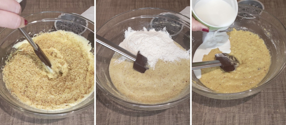 – Mescolare con la spatola poi aggiungere la farina setacciata e il latte poco alla volta (potrebbe volercene meno)