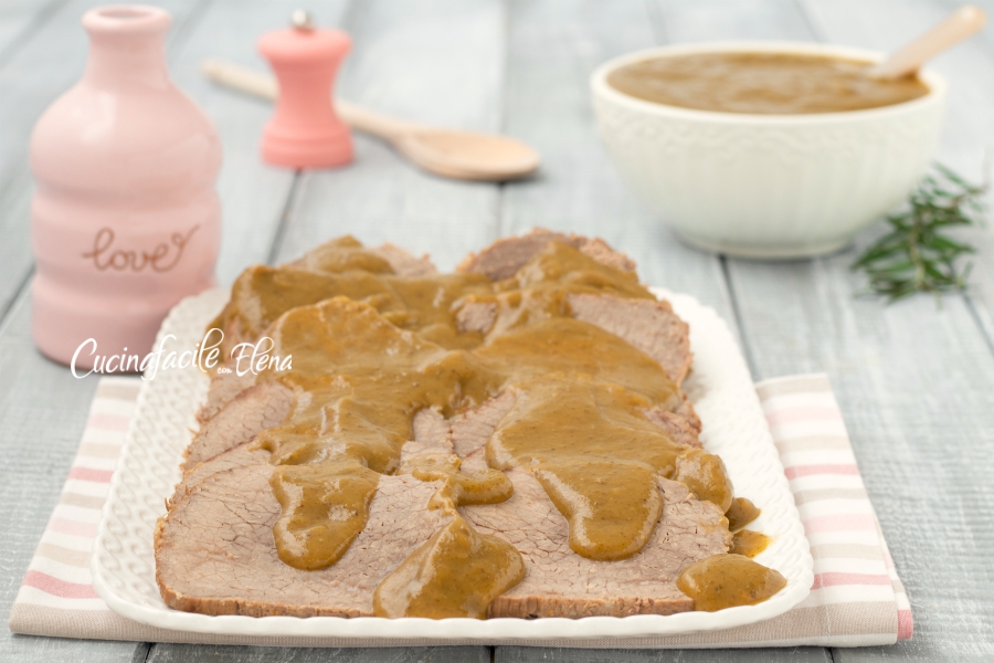 ● Tagliate la carne a fettine molto sottili, circa 3 mm, e servite l’arrosto della nonna con la salsina appena preparata, vedrete che spettacolo!