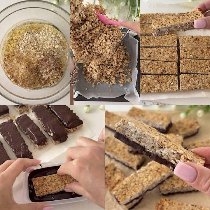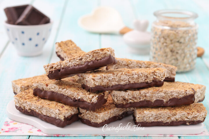 Le barrette proteiche fatte in casa sono uno snack sano e genuino, ci preparano con soli 3 ingredienti, senza zucchero, miele, sciroppo d’acero o di agave o altri dolcificanti, niente uova intere o farina, senza glutine, senza lattosio, conservanti e coloranti vari, a differenza di quelle che si comprano al supermercato. Dopo aver preparato la granola fatta in casa, in tanti mi avete chiesto se, allo stesso modo, si potevano fare le barrette proteiche, ma no, la ricetta è diversa, quindi ecco che voglio condividere, come sempre, la mia, con voi. A prepararle ci mettete 5 minuti e via in forno, per renderle ancora più buone e golose, le ho passate nel cioccolato fondente solo da un lato, ma questo è un passaggio opzionale. Le barrette proteiche si conservano per diverse settimane, sono perfetta a colazione o a merenda, ideali anche per chi fa sport, sono buonissime, energetiche e semplicissime da preparare, le migliori in assoluto!