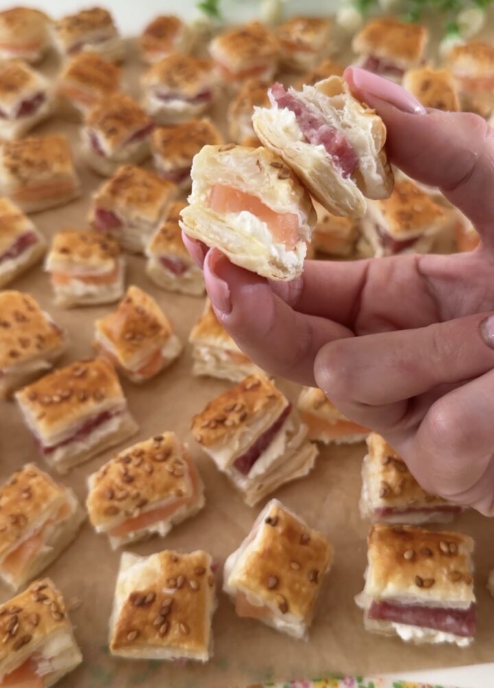 Realizzate in questo modo tutti i bocconcini di sfoglia ed eccoli pronti da servire!